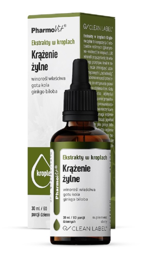EKSTRAKTY W KROPLACH NA PRAWIDŁOWE KRĄŻENIE ŻYLNE BEZGLUTENOWE 30 ml - PHARMOVIT (CLEAN LABEL)