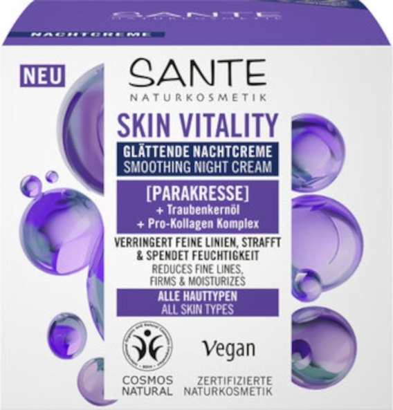 KREM DO TWARZY NA NOC WYGŁADZAJĄCY Z PARAKRESEM, OLEJEM Z PESTEK WINOGRON I KOMPLEKSEM PRO-KOLAGENOWYM ECO 50 ml - SANTE