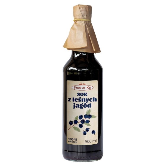 Sok bezpośrednio tłoczony NFC (nie z koncentratu) z polskich, leśnych jagód. Produkt pasteryzowany. Produkowany metodą rzemieślniczą wyłącznie ze świeżych owoców, tłoczonych na zimno.